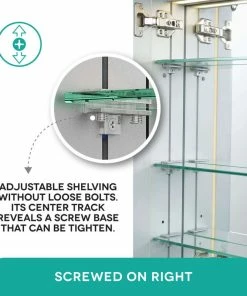 HEAVY DUTY CONSTRUCTION- Constructed from high quality anodized aluminum with a durable nonrusting and chip free finish. Adjustable tempered glass shelves offer additional bathroom storage. They will easily accommodate your essential toiletries and bath items such as soaps, shampoos, toothpaste, in addition to your makeup.