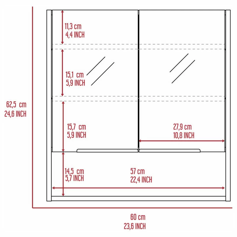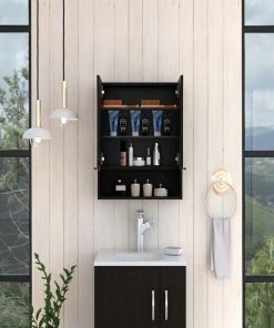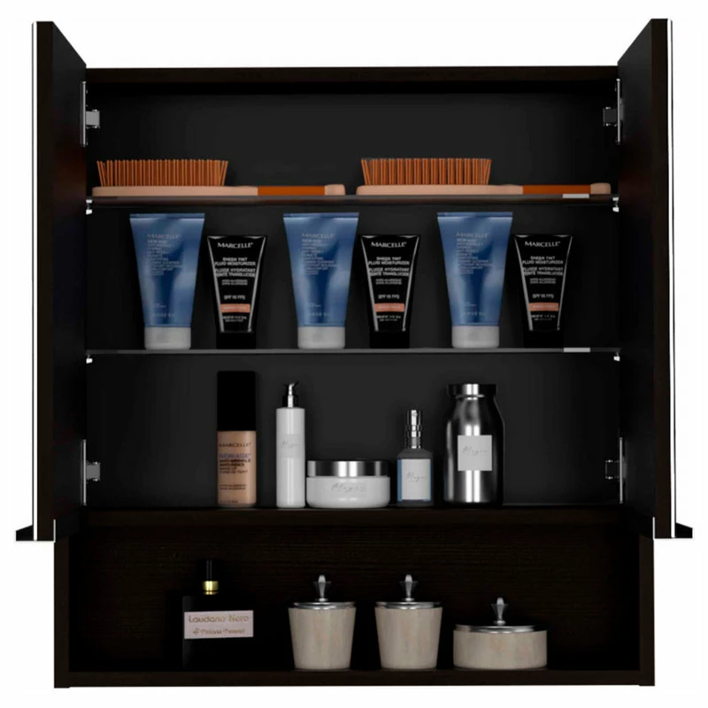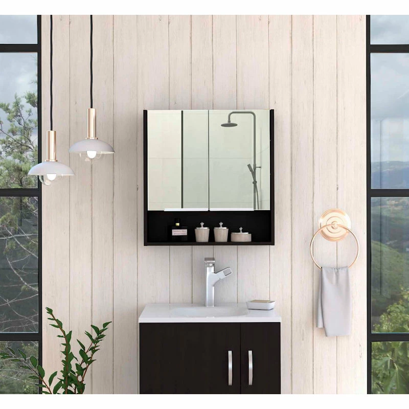 The Ozark bathroom medicine cabinet is an elegant, modern, functional, and utterly simple mirror medicine cabinet. Featuring a two-door mirror cabinet, inside, you will find three interior shelves that will allow you to store your medicines, lotions, shampoos, or any other product you regularly use.
