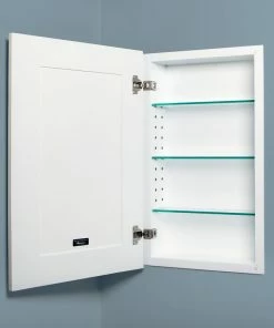 Our Shaker Style Recessed Medicine Cabinet features a beautiful shaker style cabinet door made from solid alder wood, available painted a bright stunning white or left unfinished and available with a plain center or beadboard center. Open it to reveal beautiful, functional, hidden storage. See below for all dimensions. (Please note: We also sell picture frame medicine cabinets in a wide variety of finishes, a surface-mount picture frame medicine cabinet, and some other beautifully handcrafted wall storage. Please check our other listings to see our full selection.)