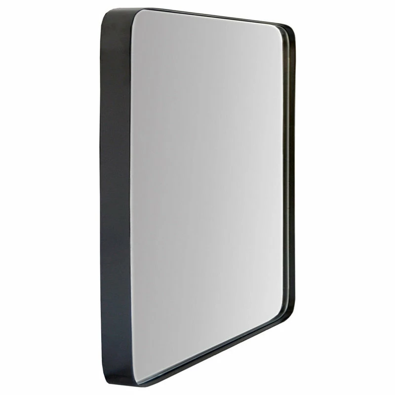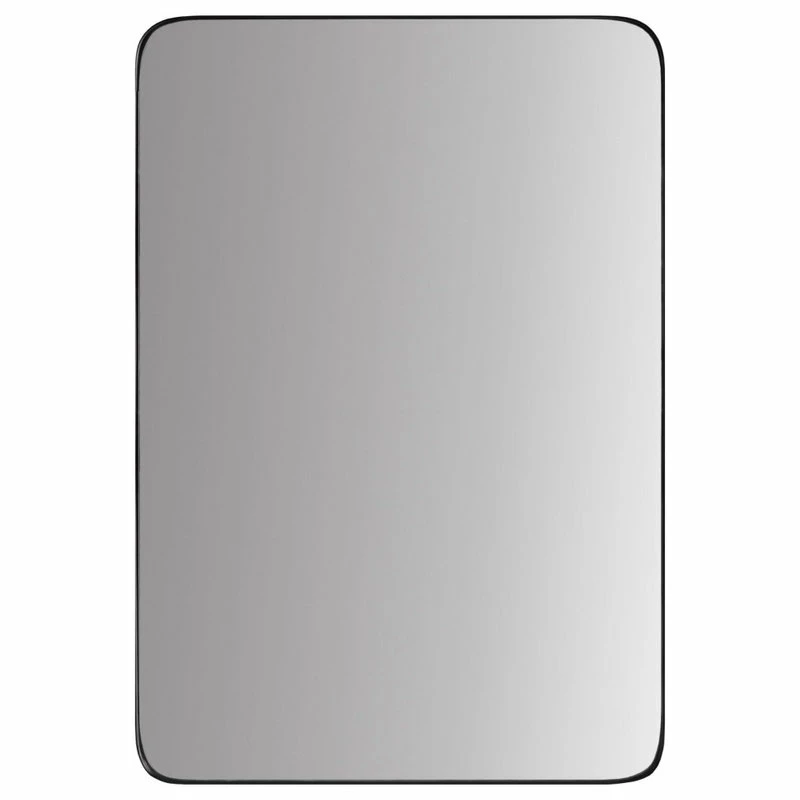 Sleek, modern, beautiful. This gorgeous mirror is sure to dazzle with its high-quality design and ease of installation. 24_W x 36_H x 1.5_D. Hangs vertical or horizontal. Hanging hardware (d-rings) installed for quick installation. Screws/anchors included. Felt backer applied to prevent unwanted marks on wall. 1.5_ frame depth with a high-quality, matte black finish. Approved for high-moisture areas such as bathrooms. Rust proof MDF frame.