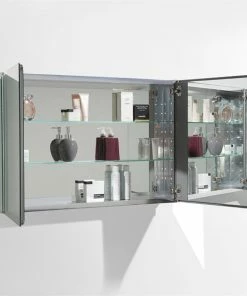 This stylish rectangular medicine cabinet has clean, simple lines and is designed to blend beautifully with any bathroom dΓ©cor. Made of MDF with wood, this spacious bathroom cabinet has a modern look and a lovely White finish. The middle section is mirrored and opens to reveal ample space for everyday necessities. Two side compartments offer additional storage and feature soft-close, hinged doors. Thereβs a total of six handy compartments within this unit to keep essentials neatly tucked away. This contemporary Fresca Medicine Cabinet measures 32β in width and is also available in Espresso and Gray.
