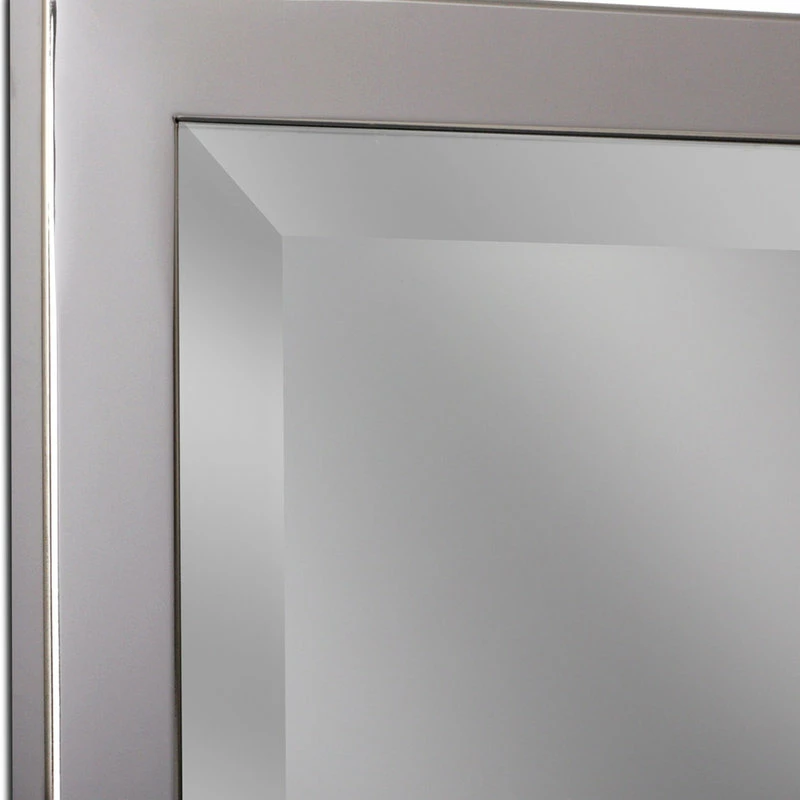 This mirror features a sleek, chrome-colored frame designed in a transitional-style to suit both contemporary and traditional decor. Its beveled glass construction gives it a brilliant shine when it catches the light just right. This little detail elevates the piece’s luxurious and elegant allure, making an already beautifully made piece even better.
