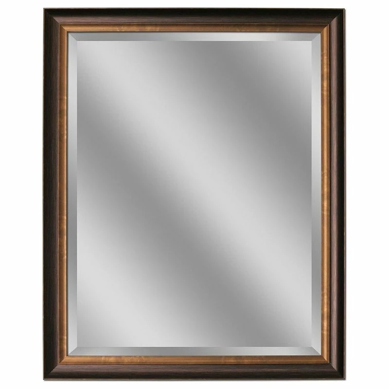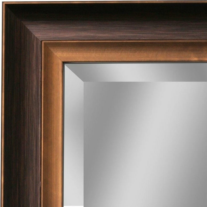This 2 inch polystyrene framed mirror combines new and traditional decor styles into one stunning package. Like antique jewelry, whose color fades when worn down by use, this oil-rubbed bronze molding features a dark metallic color base, accented with bright copper highlights around the edge and interior lip.