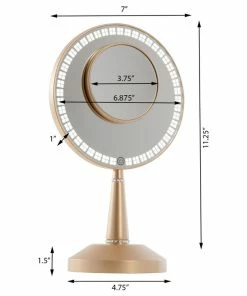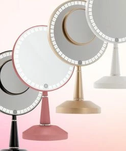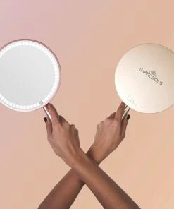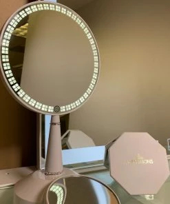 Impression Vanity’s Bijou LED Hand Mirror is the crowning jewel of hand mirrors! The Bijou features a modern pattern of bright LED lights with adjustable brightness. Simply tap the mirror built-in touch sensor to turn on the mirror and press and hold to dim the lights to the level you desire. Includes a 5x magnifying mirror for close up work!