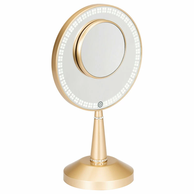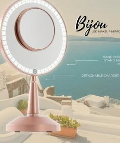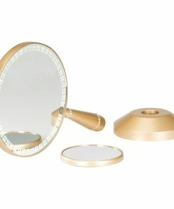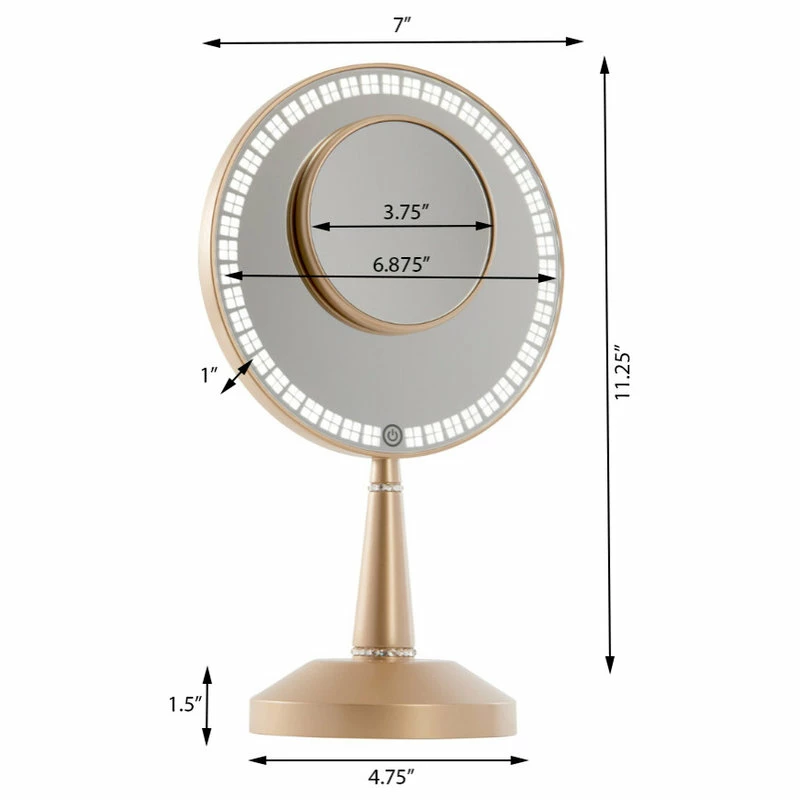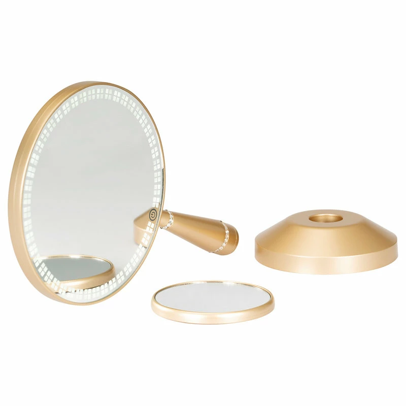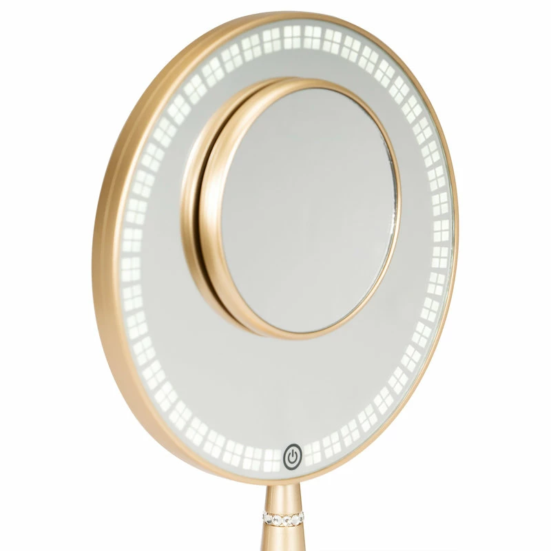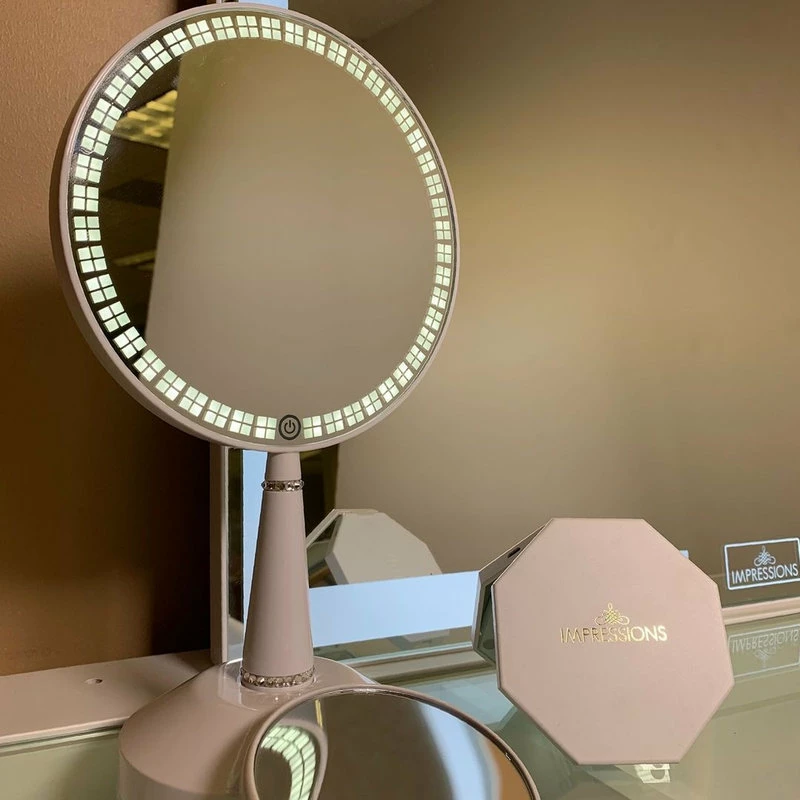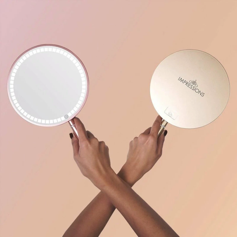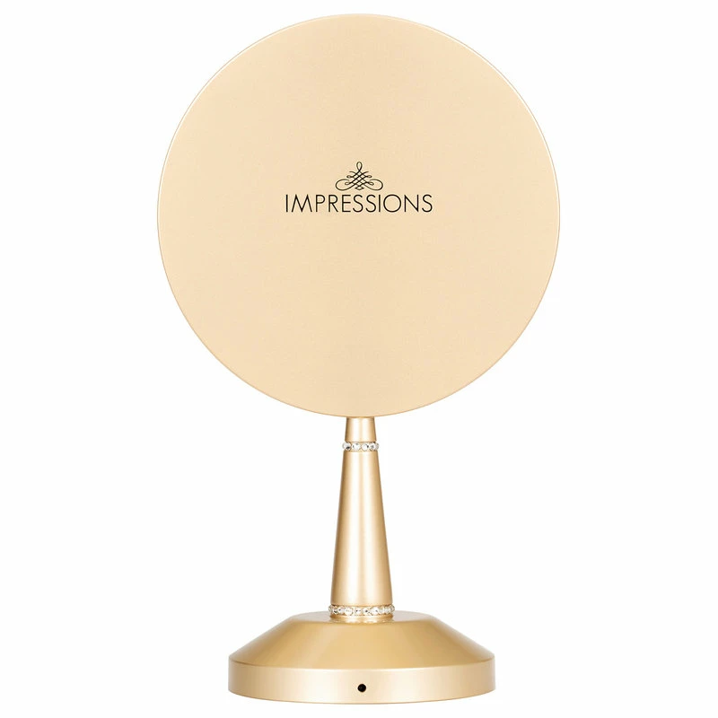 Impressions Vanity Bijou LED Hand Mirror with Standing Base and 5X Magnetic Magnifying Mirror, Rechargeable Round Shape Makeup Vanity Mirror with LED Lights
