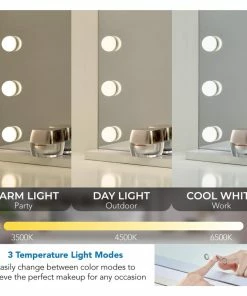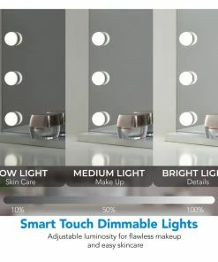 - CUSTOMIZABLE A complete vanity station that comes loaded with features. Easy touch screen control adjusts luminosity to low, medium or bright light for flawless makeup. 3 temperature light modes provide you with warm, day, cool light options.