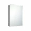 Jensen 16″ x 26″ recessed metal medicine cabinet with a frameless beveled mirror door and 2 adjustable plastic shelves. Ideal for commercial, military, and residential applications. Featuring a reversible door for left- or right-hand opening installations. The shelves are adjustable for optimal flexibility.