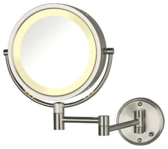 The Jerdon HL75ND Hard-Wired 8.5-Inch Two-Sided Swivel Halo Lighted Wall Mount Mirror is used in luxury hotels and spas because of its convenience, sleek look and magnification. This fog free, two-sided circular mirror has an 8.5-inch diameter that provides 1x and 8x magnification options to make sure every detail of your hair and makeup are in place. The halo light design around the perimeter of the mirror and smooth rotation adjust to all angles for a dynamic point of view. An on/off rotary knob on the oval base will activate the halo lighting when you need it. The HL75ND extends 13.5-inches from the wall and can be easily moved around, while still being firm enough to hold for odd angles. This mirror has an attractive nickel finish that protects against moisture and condensation and is designed to be wall mounted. This item comes complete with mounting hardware and is designed as a hard-wire only application (does not have a power cord or plug). This item can use the JPT25W replacement bulb (sold separately). The Jerdon HL75ND Hard-Wired 8.5-Inch Two-Sided Swivel Halo Lighted Wall Mount Mirror comes with a 1-year limited warranty that protects against any defects due to faulty material or workmanship. The Jerdon Style company has earned a reputation for excellence in the beauty industry with its broad range of quality cosmetic mirrors (including vanity, lighted and wall mount mirrors), hair dryers and other styling appliances. Since 1977, the Jerdon brand has been a leading provider to the finest homes, hotels, resorts, cruise ships and spas worldwide. The company continues to build its position in the market by both improving its existing line with the latest technology, developing new products and expanding its offerings to meet the growing needs of its customers.