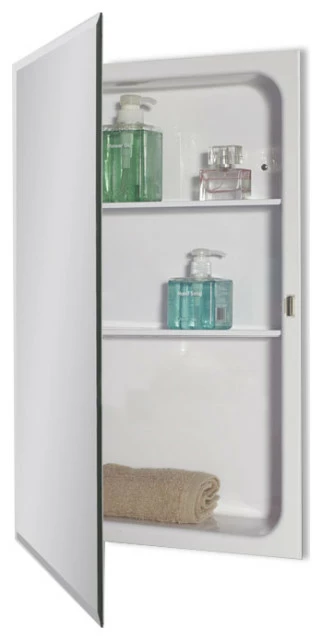 Our Builders Grade Series medicine cabinets satisfy the budget conscious design without sacrificing quality. Made of either durable rust proof polystyrene or white baked enamel steel construction. Available in either a decorative beveled mirror or a bright annealed stainless steel mirror trim.