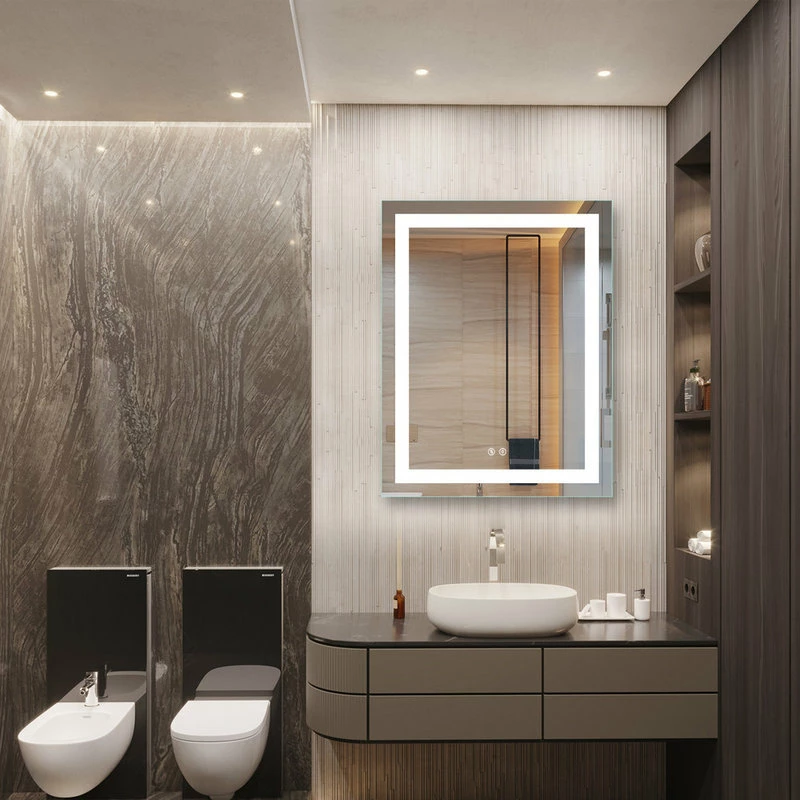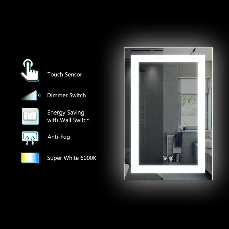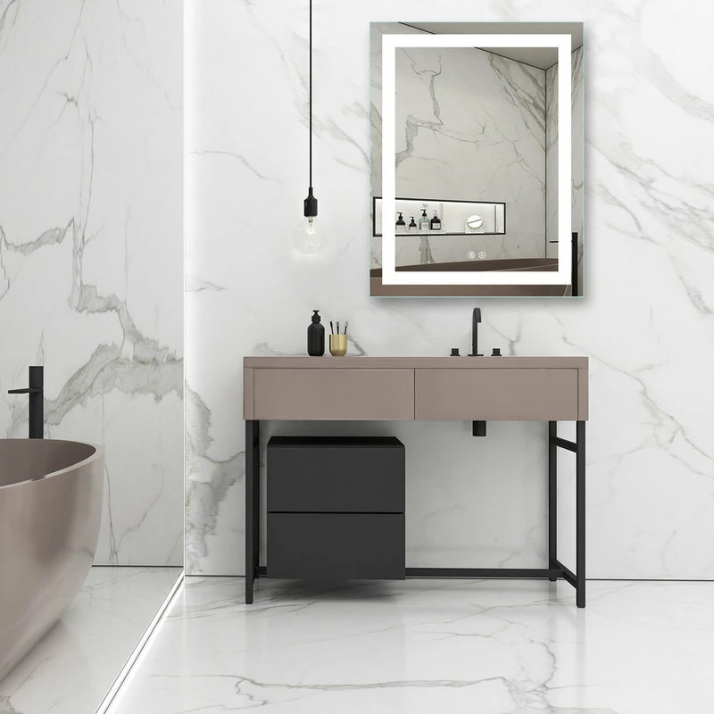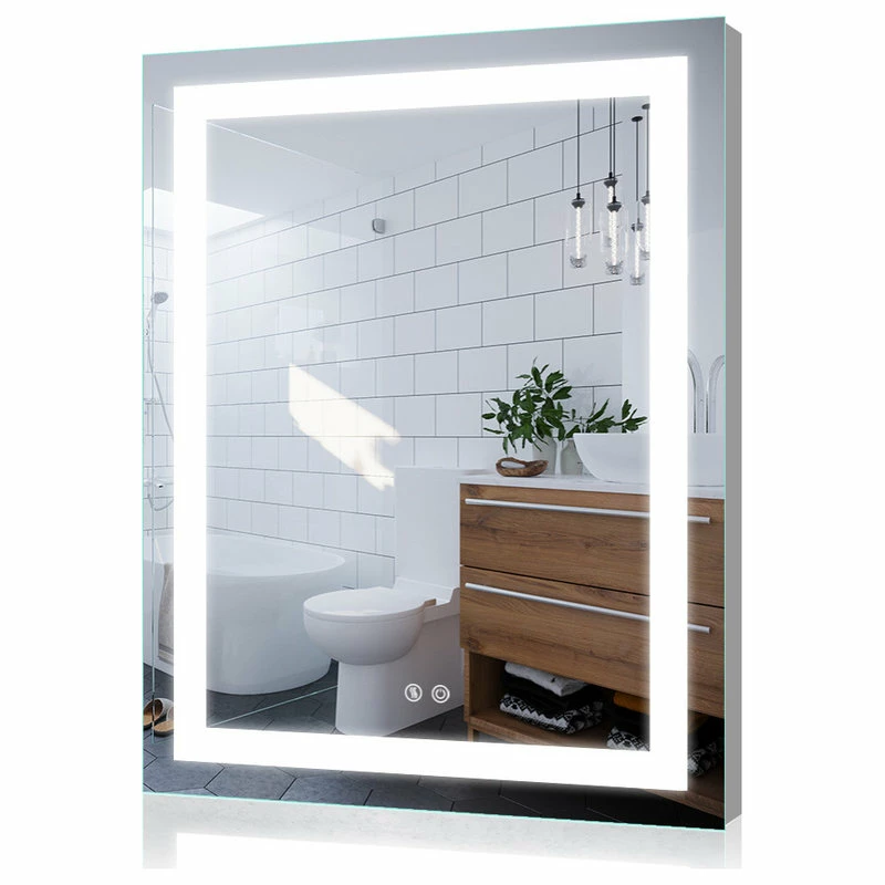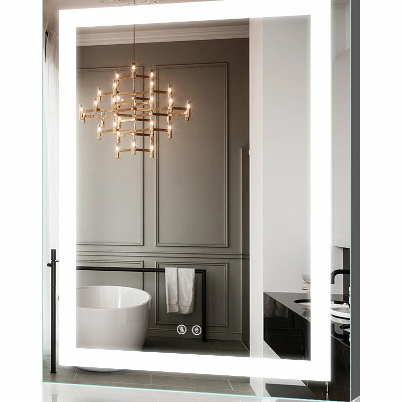 Kiva rhyme bathroom mirror is a perfect combination of fashion design and modern technology. The bathroom mirror provides surround LED lighting at the edge and has defogging function. The LED lighted mirror helps to always maintain a clear reflective image to meet your beauty, hygiene and clothing needs. This LED mirror can add luster and style to any decoration, It’s a good choice for giving gifts on any festival, such as father’s day, mother’s day and Valentine’s day.