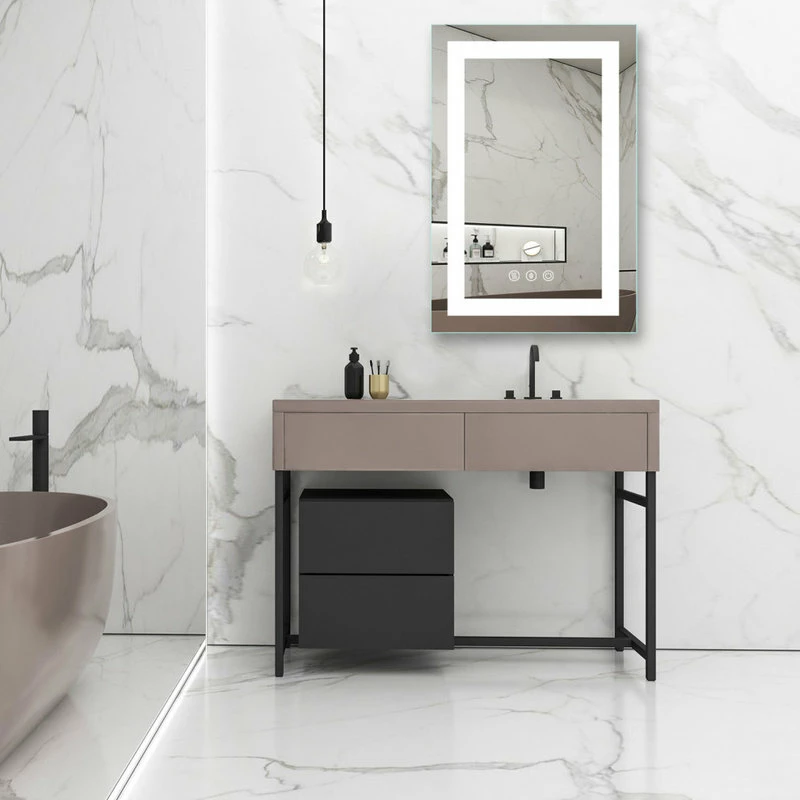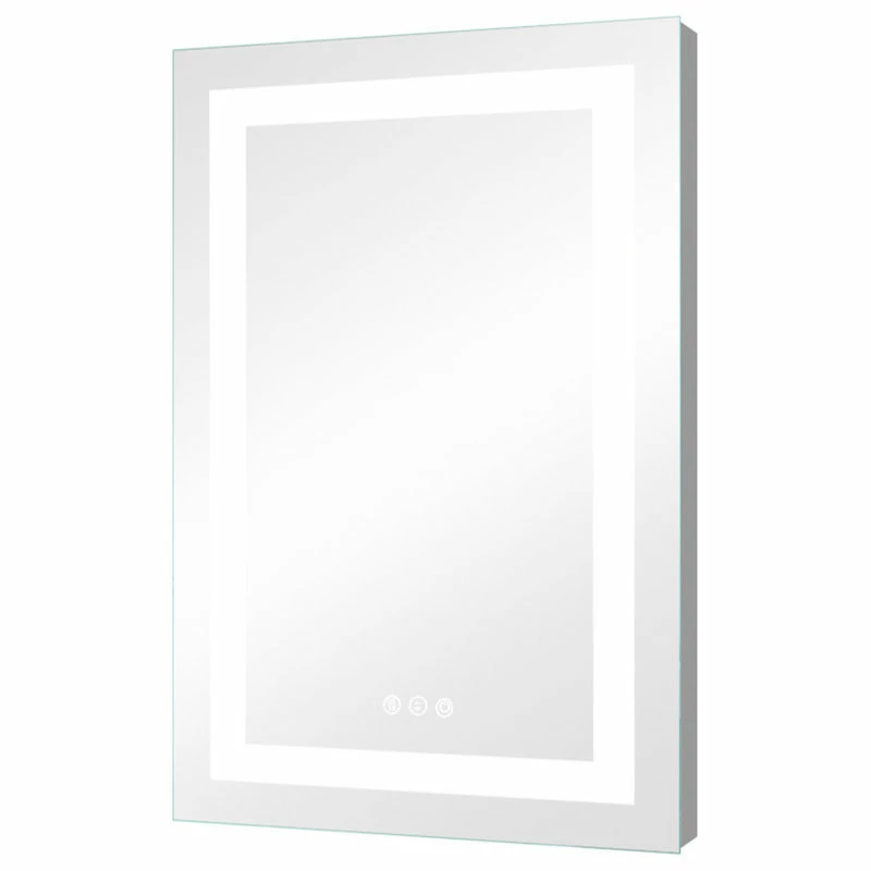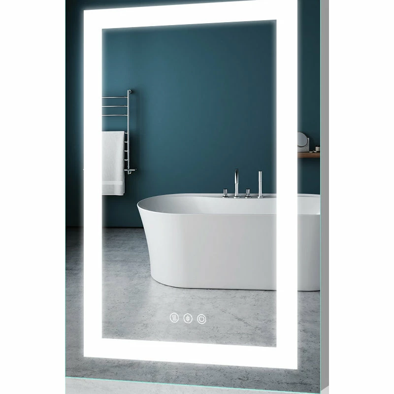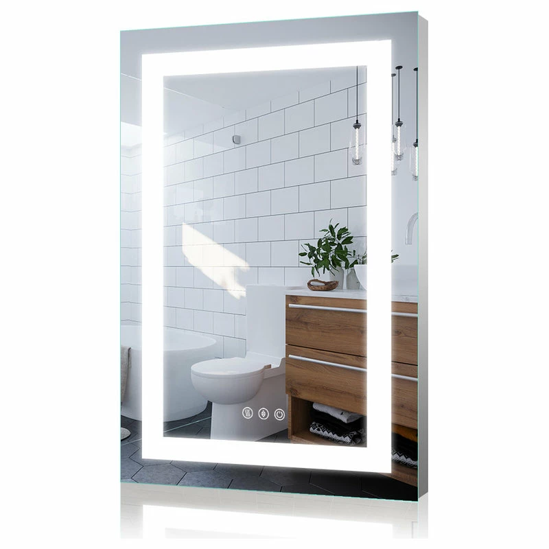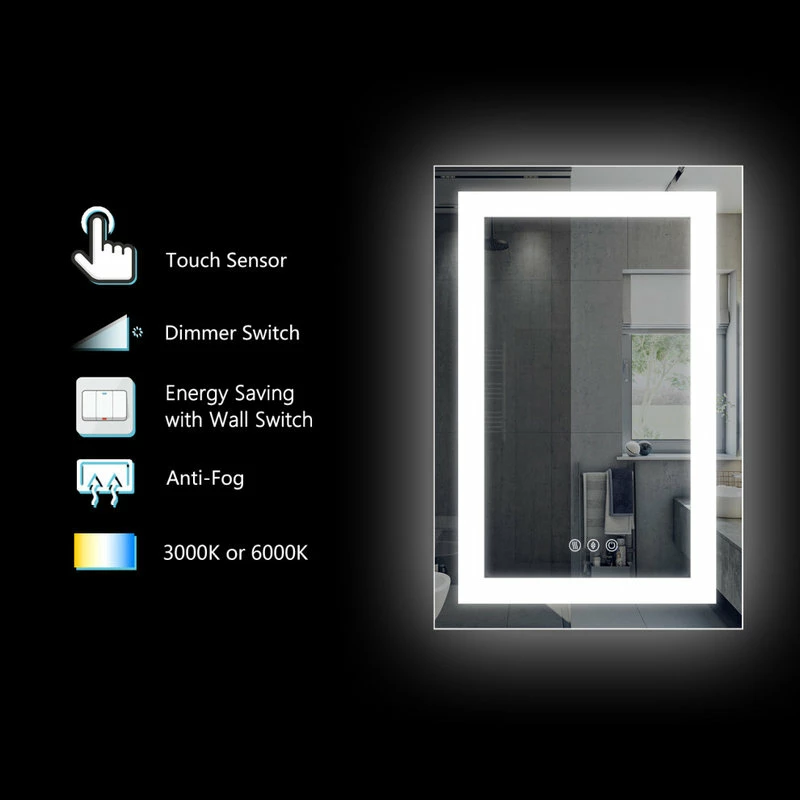 Kiva rhyme bathroom mirror is a perfect combination of fashion design and modern technology. The bathroom mirror provides surround LED lighting at the edge and has defogging function. The LED lighted mirror helps to always maintain a clear reflective image to meet your beauty, hygiene and clothing needs. This LED mirror can add luster and style to any decoration, It’s a good choice for giving gifts on any festival, such as father’s day, mother’s day and Valentine’s day.[2-Button] The mirror power switch and anti-fog switch are separate control, anti-fog according to need to open and close, safe and energy-saving. The defogging function may take 5-10 minutes to completely cover/clear the entire bathroom mirror, please turn on this function before you use it. Touch the power switch button for 2-3 seconds to adjust the brightness from 10% to 100%. Brightness will be stored automatically.[90 + CRI (Color Rendering Index)] The backlit mirror light is very close to the sunlight, high quality Led strip with 6400K cold white. Each meter of led light strip has 120 light beads. The backlit mirror can protect your eyes, and allows you to see the most natural yourself. The mirror light is bright enough for making up.[IP67 Protection Level]US Export Standard: Our bathroom vanity mirror all smart electrical modules and components are sealed in an insulated electrical box. Waterproof and anti-leakage make smarter safer.[ETL Listed] Our electric mirror has ETL certification for whole mirror, so you can use it more safely![Use time and unique material] LED lifetime: Over 50,000 hours (Using the lighted vanity mirror 3 hours a day means it will last 45 YEARS), Our mirrors are made of copper free environmental protection materials and new resin materials[EASY INSTALLATION] The bathroom mirror can be hung Horizontally or Vertically.