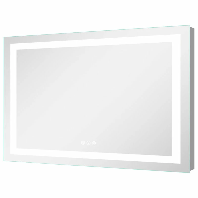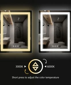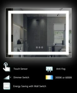 [3-Button] The mirror has three buttons: demisting, dimming and switch. Short touch for on/off, touch for a long time to adjust the light intensity, light flash when brightest or darkest. The LED backlit mirror light can change light color, touch the dimming button to turn the 3000K warm light to 6000K white light. Brightness will be stored automatically.[90 + CRI (Color Rendering Index)] The backlit mirror light is very close to the sunlight, high quality Led strip with 6400K cold white. Each meter of led light strip has 120 light beads. The backlit mirror can protect your eyes, and allows you to see the most natural yourself. The mirror light is bright enough for making up.[IP67 Protection Level]US Export Standard: Our bathroom vanity mirror all smart electrical modules and components are sealed in an insulated electrical box. Waterproof and anti-leakage make smarter safer.[ETL Listed] Our electric mirror has ETL certification for whole mirror, so you can use it more safely![Use time and unique material] LED lifetime: Over 50,000 hours (Using the lighted vanity mirror 3 hours a day means it will last 45 YEARS), Our mirrors are made of copper free environmental protection materials and new resin materials[EASY INSTALLATION] The bathroom mirror can be hung Horizontally or Vertically. $567.00 Original price was: $567.00.$95.99Current price is: $95.99.