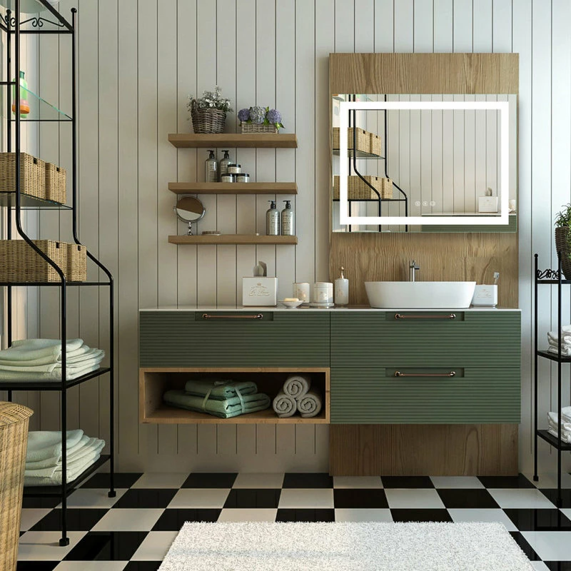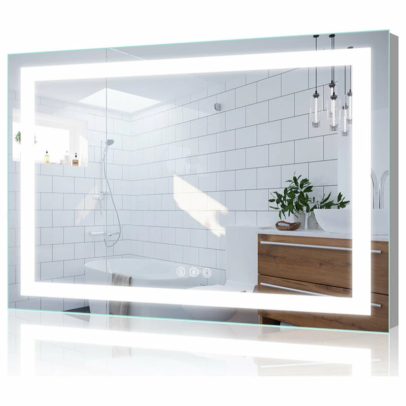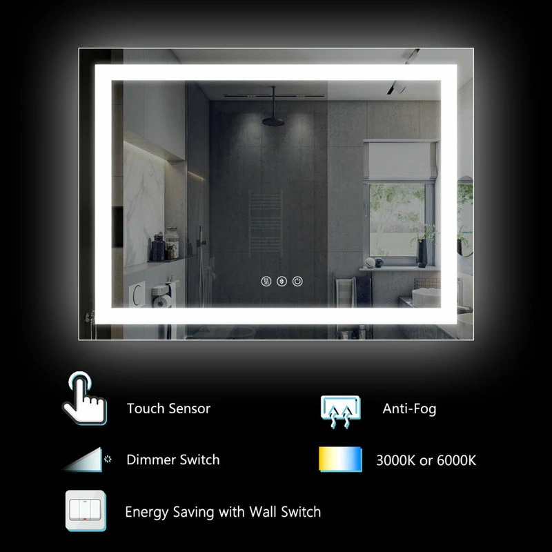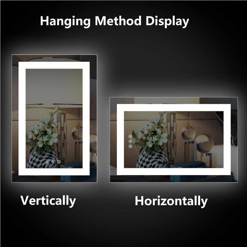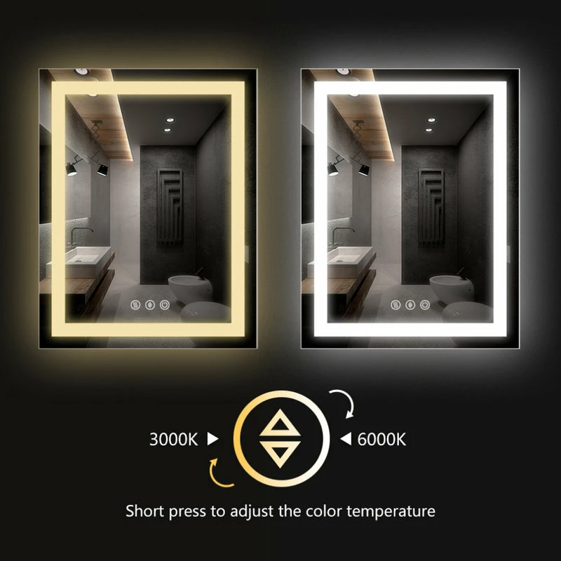 Kiva rhyme bathroom mirror is a perfect combination of fashion design and modern technology. The bathroom mirror provides surround LED lighting at the edge and has defogging function. The LED lighted mirror helps to always maintain a clear reflective image to meet your beauty, hygiene and clothing needs. This LED mirror can add luster and style to any decoration, It’s a good choice for giving gifts on any festival, such as father’s day, mother’s day and Valentine’s day.