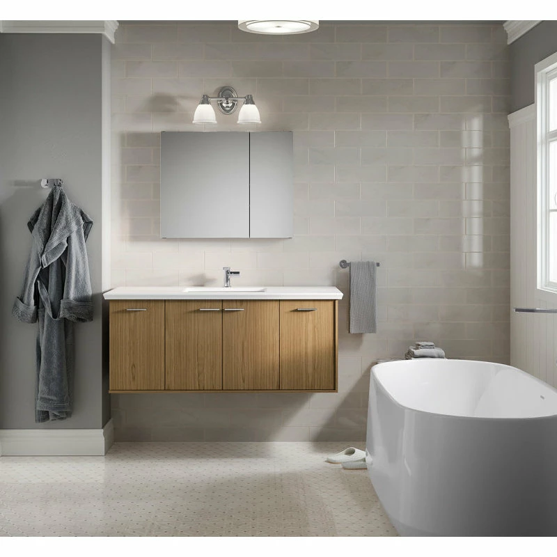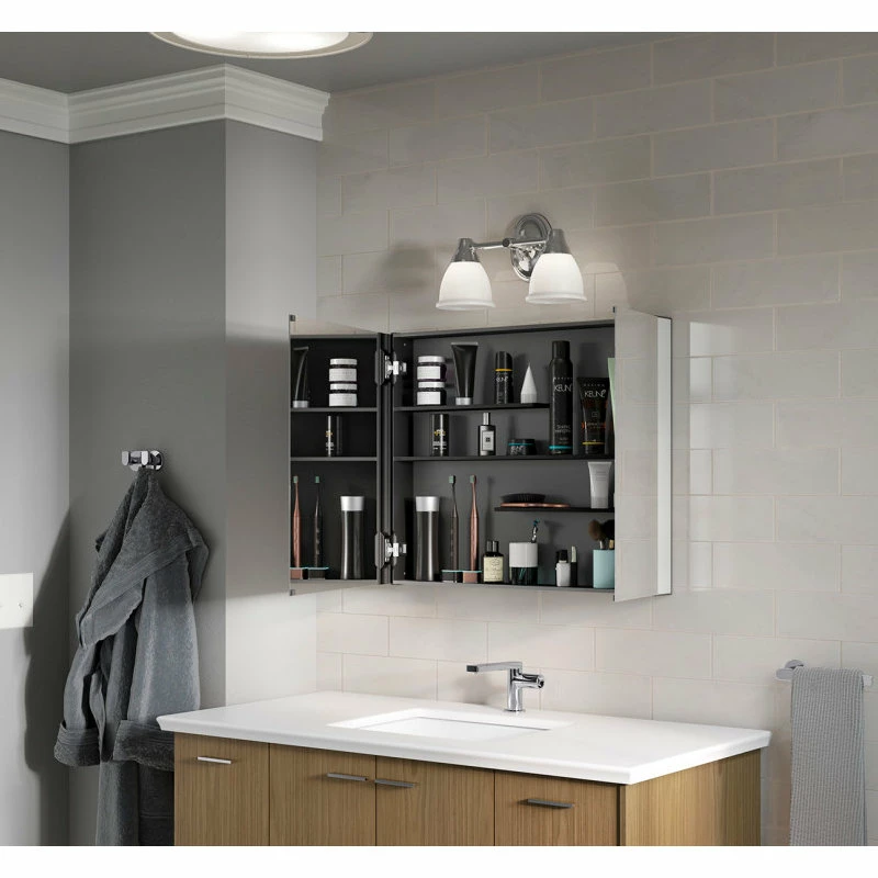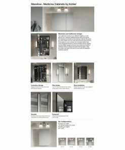 Maximize your bathroom storage with the Maxstow medicine cabinet. Staggered shelving holds tall and short items with no wasted space, fitting everything you need and keeping clutter off your countertop. The slim 3-1/2-in-deep design provides the same internal storage space as traditional 5-in-deep cabinets. Installation is fast and easyβsimply screw to the wall, right out of the box.Kohler K-81146 Features:
