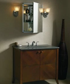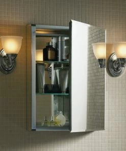 This mirrored cabinet features a 1/2″ beveled frameless door that can be installed with a left or right hinge. Inside, two adjustable 1/4″ glass shelves hold all your toiletries and bath items in front of a beautifully mirrored rear wall. Rust-free aluminum construction ensures years of use, and installation has never been easier with the included side kit, allowing for either recess or surface-mount installations.Features: