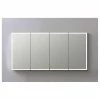 - Features Full-Overlay, Dual-Sided Mirror Door with Beveled Edges
