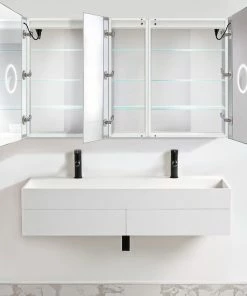 Our LED Medicine Cabinet is a symphony of design elements. We’ve combined our most powerful lighting advancements to create a beautiful storage solution – an expression of luxury and function for your bath. From a distance, the LED border produces a striking, modern glow. Up close, enjoy unparalleled light dispersion on the face and body. Effortless to use, a revolutionary touch icon is integrated into the mirror face for seamless on/off toggling and dimming with memory functionality.