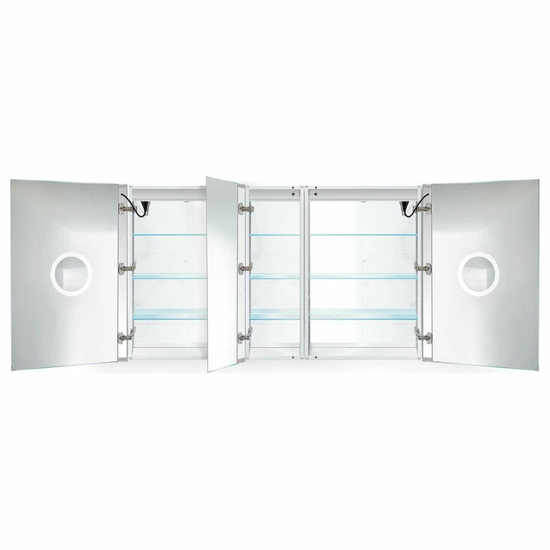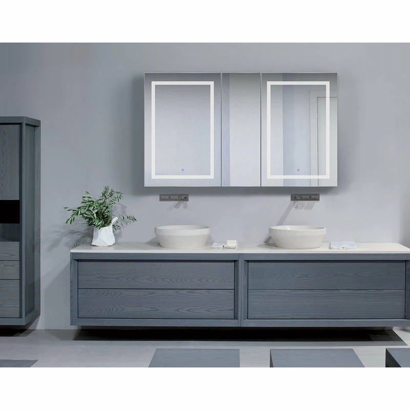 Open the lighted section cabinet to reveal the full suite of amenities. In the mirrored door, a 3x magnified, LED-lit mirror is perfect for detailed makeup application. The mirrored interior is illuminated automatically for a luxurious touch. Our wide-angle hinges provide freedom of motion and panorama. The 2+2 smart outlet contains two traditional outlets and two USB interfaces to keep beauty tools, as well as a smartphone or tablet, close at hand. We ensure reliable optical clarity with active defogging technology. This LED Medicine Cabinet is limited only by your imagination.