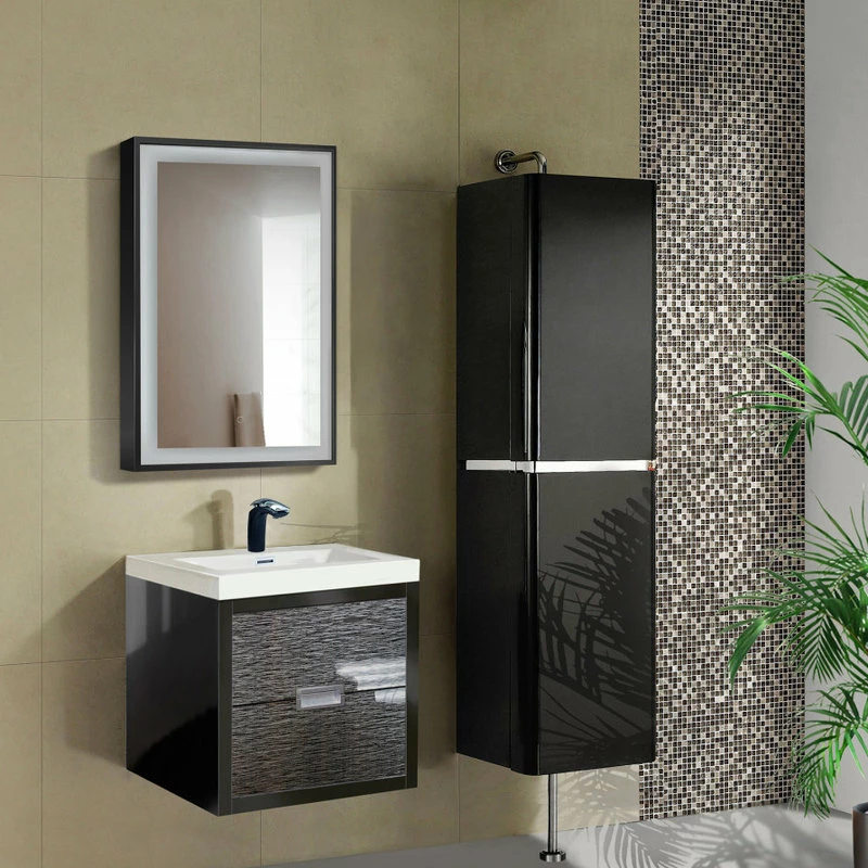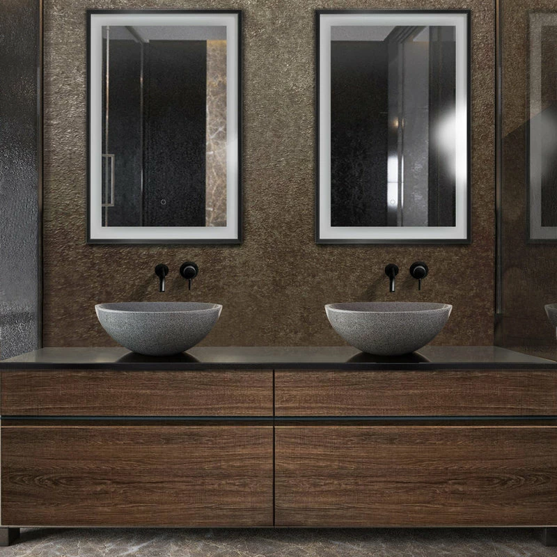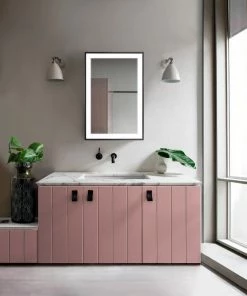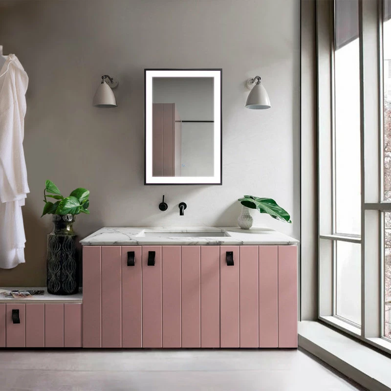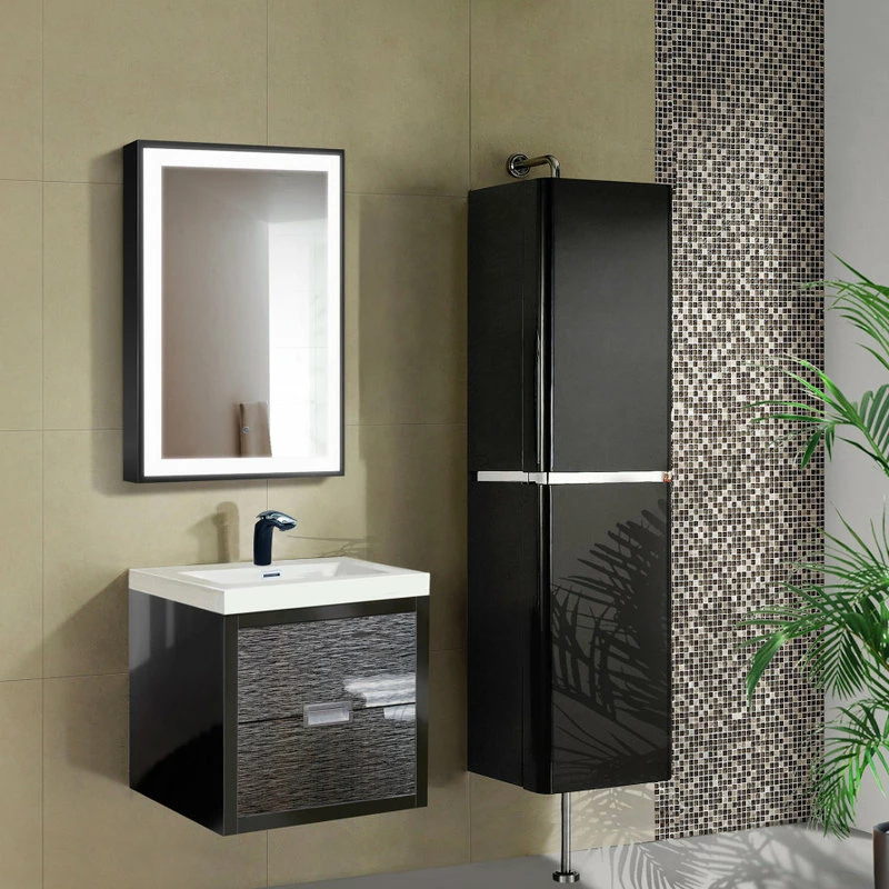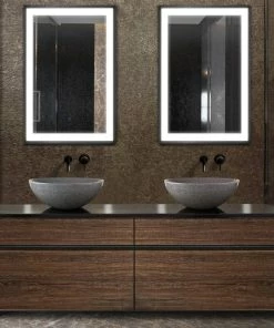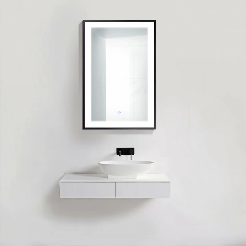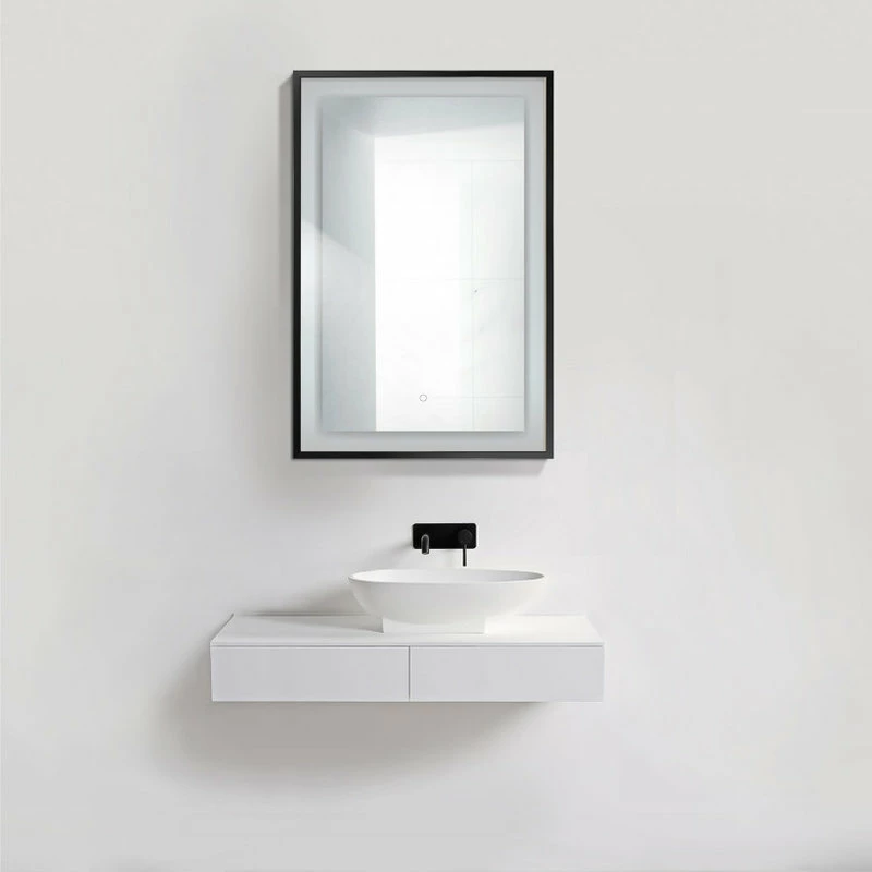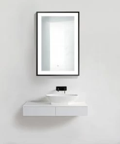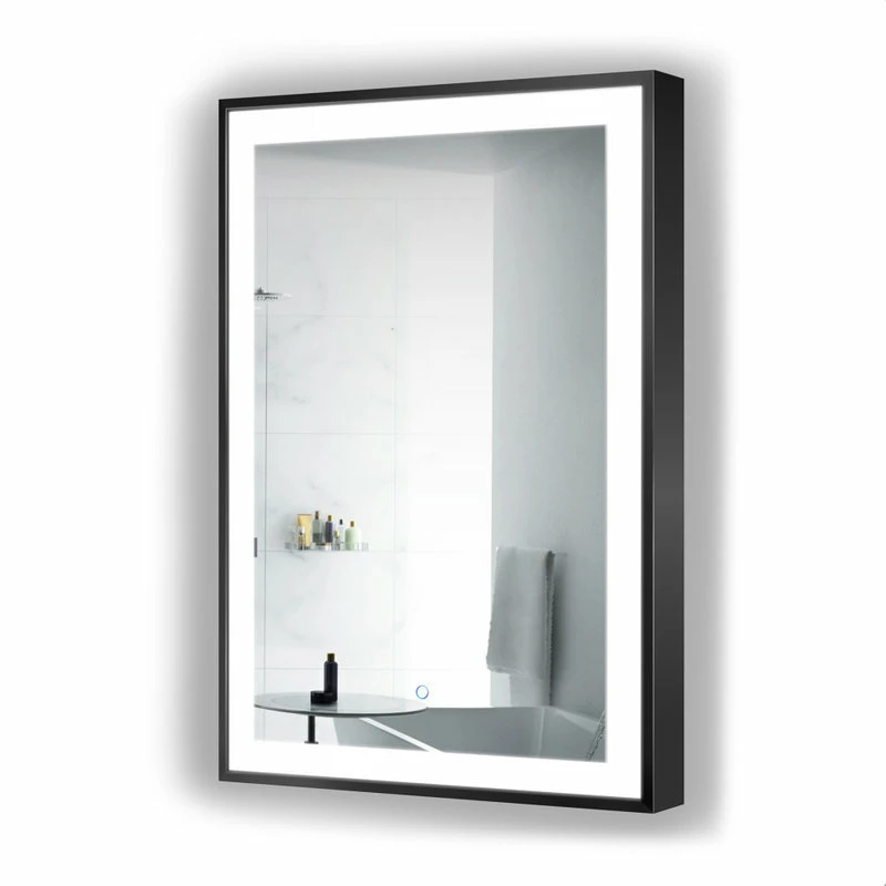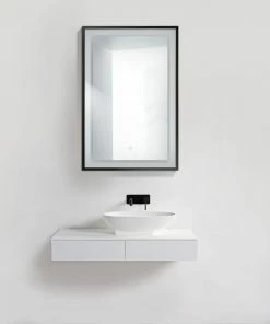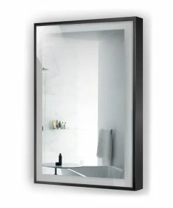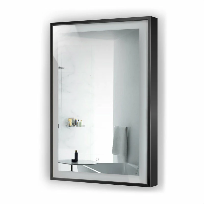 - With a smooth, Matte Black frame, the mirror adds a designer touch to any bathroom environment. Its sleek design creates the illusion of space.
