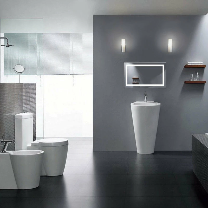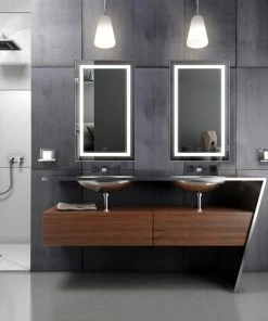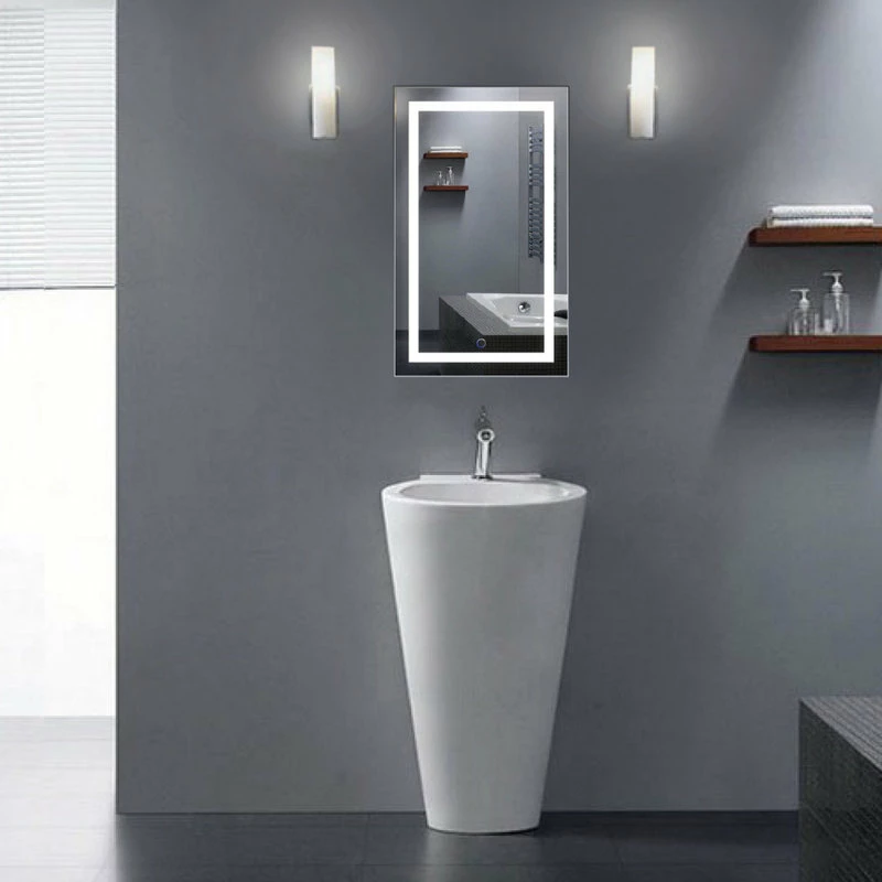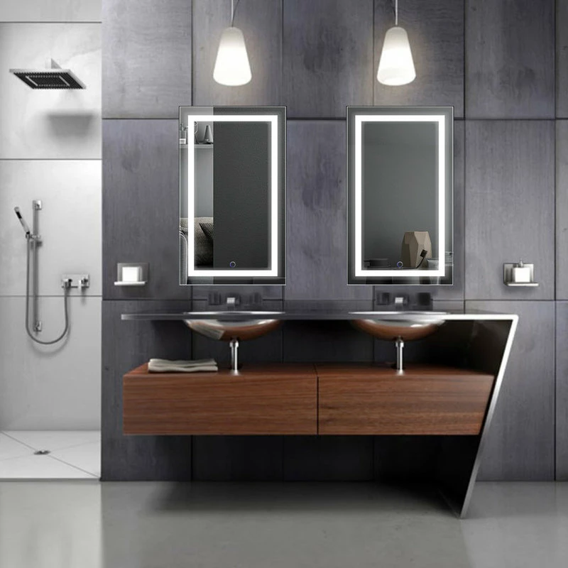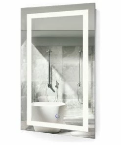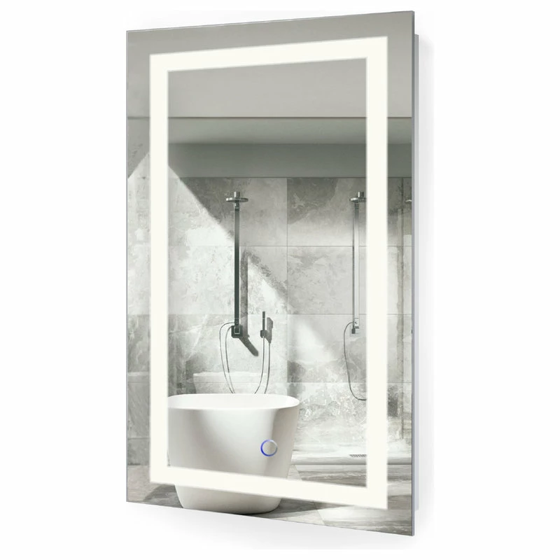 The LED Bathroom Wall Mirror With Defogger and Dimmer is a prime example of modern bathroom design technology. Clean lines combine with LED illumination to provide a functional border and controllable lighting. Crisp and flawless, an innovative heating pad coil ensures that the mirror does not steam up, avoiding streaks and smudges. This contemporary design complete with modern comforts is particularly amenable when shaving or applying makeup.