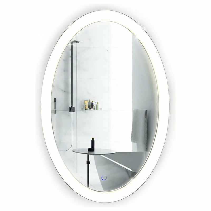 The Fog Free Oval Bathroom Mirror features integrated Bulb type: LED that not only makes getting ready that much easier, but which also creates the stunning look of a glowing halo. A heading coil pad in back that defogs the glass, while a simple touch-activated sensor in front allows for dimming the lighting. Hung vertically or horizontally, this elliptical mirror will make for an impressive addition to the bathroom.