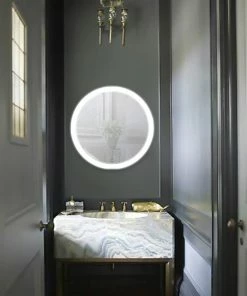 Brighten your morning routine with the Sol Round LED Mirror. Its LED light is built into the outer frame of the mirror, creating a beautiful corona effect and a warm ambiance. Control the light with a dimmable feature, or get a clearer look even in a steamy room with its helpful defogger. The Sol brings a contemporary form to your bathroom wall in one smart design.