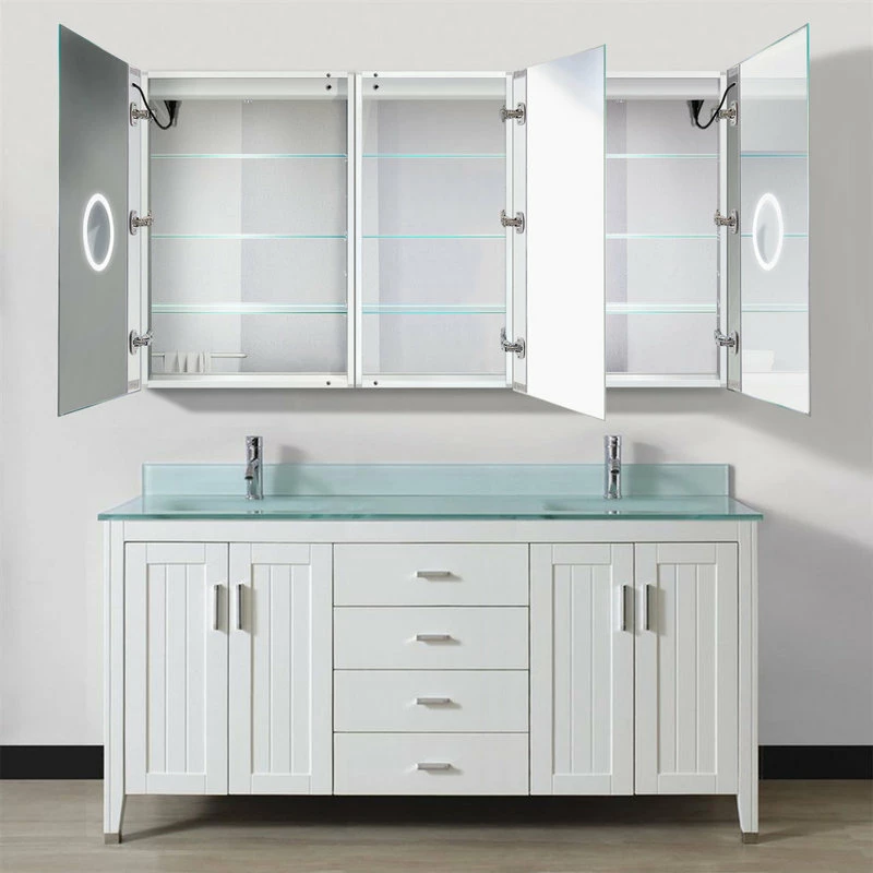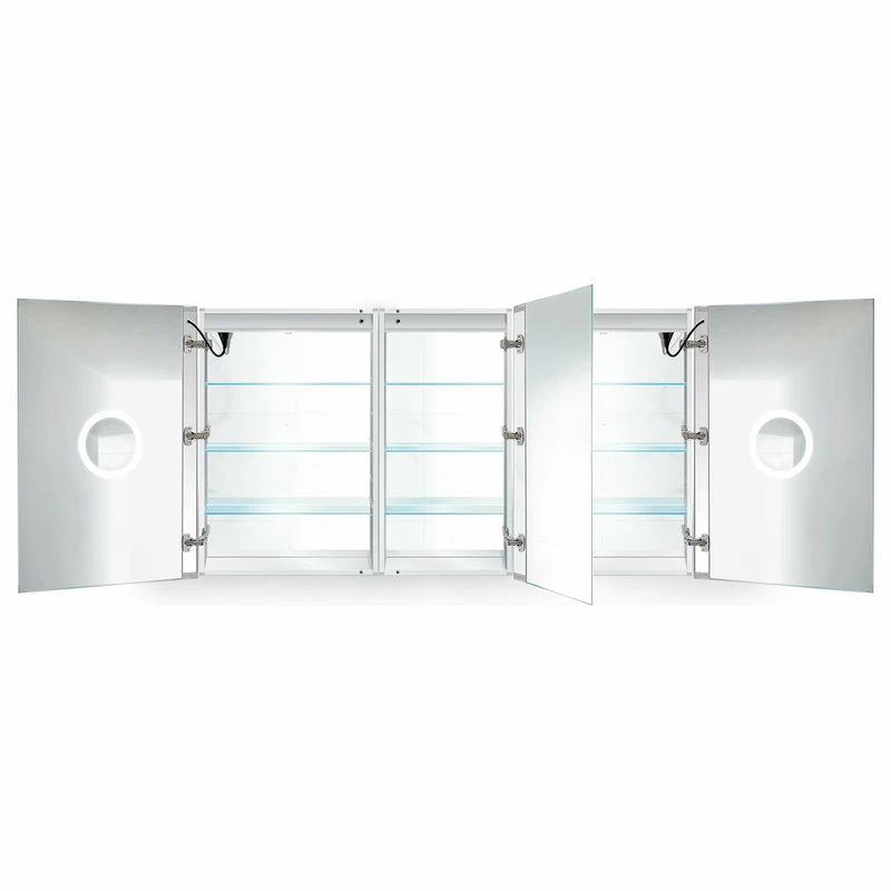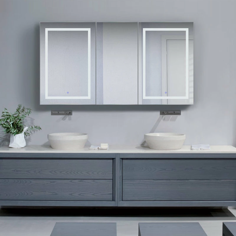 Our LED Medicine Cabinet is a symphony of design elements. We combined our most powerful lighting advancements to create a beautiful storage solution an expression of luxury and function for your bath. From a distance, the LED border produces a striking, modern glow. Up close, enjoy unparalleled light dispersion on the face and body. Effortless to use, a revolutionary touch icon is integrated into the mirror face for seamless on/off toggling and dimming with memory functionality Open the lighted section cabinet to reveal the full suite of amenities. In the mirrored door, a 3x magnified, LED-lit mirror is perfect for detailed makeup application. The mirrored interior is illuminated automatically for a luxurious touch. Our wide-angle hinges provide freedom of motion and panorama. The 2+2 smart outlet contains two traditional outlets and two USB interfaces to keep beauty tools, as well as a smartphone or tablet, close at hand. We ensure reliable optical clarity with active defogging technology. This LED Medicine Cabinet is limited only by your imagination.