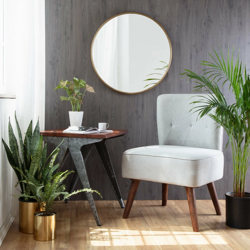 MIRROR, MIRROR ON THE WALL The classic chevron pattern gets an industrial upgrade with the Wessex modern mirror. The perfect accent to your wall mirror, the zig-zag pattern is rounded to charm your existing room aesthetic with its uniqueness that never gets boring. Powder-coated iron sheet is hand-turned and expertly corrugated onto a metal piping for a stunning effect. The influence of modern industrial design is heavy on the seamless pattern of this mirror. With a robust handmade construction, it will hang nicely in your entryway, bedroom and everywhere in between.