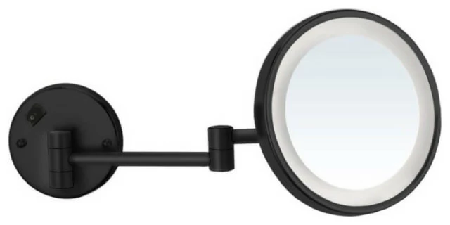 Available with 5x magnification, this wall mounted makeup mirror is made out of the highest quality brass and finished with a classy matte black style. The extendable double arm and hardwire installation makes this a useful and easy to install addition to any bathroom. With an incorporated on/off switch, the single faced mirror has built in LED lights, making it the perfect add in for your bathroom.