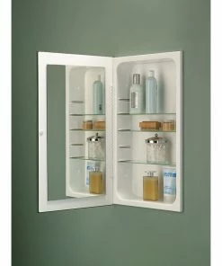 - Frameless mirror door 1/18in thick float glass mirror door front with polished edges (POL1), 1/8in float glass mirror door back with polished edges 26 gauge steel door back with white, heat cured, acrylic paint finish