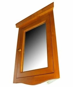 Item 14338 BETHPAGE CORNER WALL-MOUNT WOODEN MEDICINE CABINET WITH MIRROR Bethpage medicine cabinet from Renovators Supply is the ideal way to add some storage space in your bathroom corner with elegance. This corner wall-mount medicine cabinet features solid hardwood construction for longevity and durability in your medicine cupboard. Inside of Cabinet is Light Primed ready for you to paint in your favorite color. Corner cabinets use space efficiently to keep your bathroom from getting cluttered without losing cabinet storage space. Recessed framed mirror in door, it opens on the LEFT! FEATURES