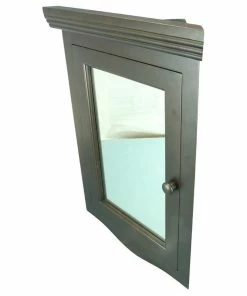This Dark Oak painted hardwood corner medicine cabinet from Renovators Supply Manufacturing is the ideal way to add some storage space behind your bathroom mirror.