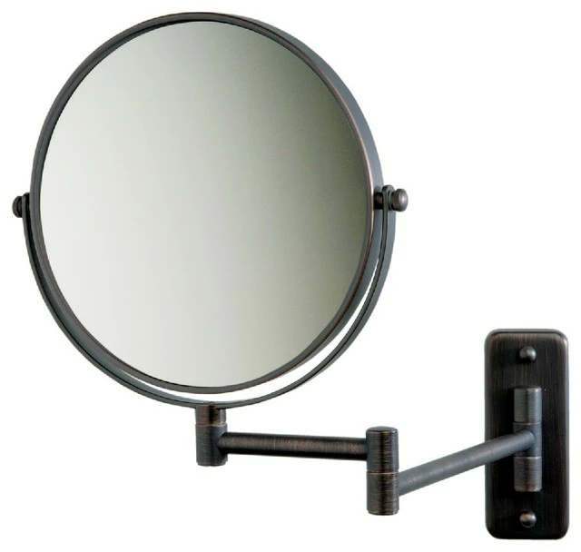 Specifications: Non-Lighted eight inch Diameter Wall Mounted Bronze Make-up Mirror seven times Magnification