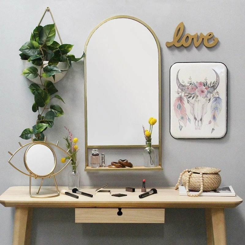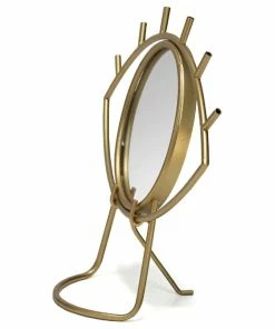 Stratton Home’s Gold Eye Tabletop Mirror is a unique wide-eyed expression with a playful, bohemian style. Its collapsible folding leg stand will give you the flexibility of displaying it or storing it away. The quirky hand-painted gold eye design with lashes has a chic, feminine quality, so it’s especially perfect for a bed or bathroom. Measuring only 6.25″ diameter in size, it is a wonderful and helpful addition to a vanity or dressing table when getting ready or as a fun accent to a guest room.