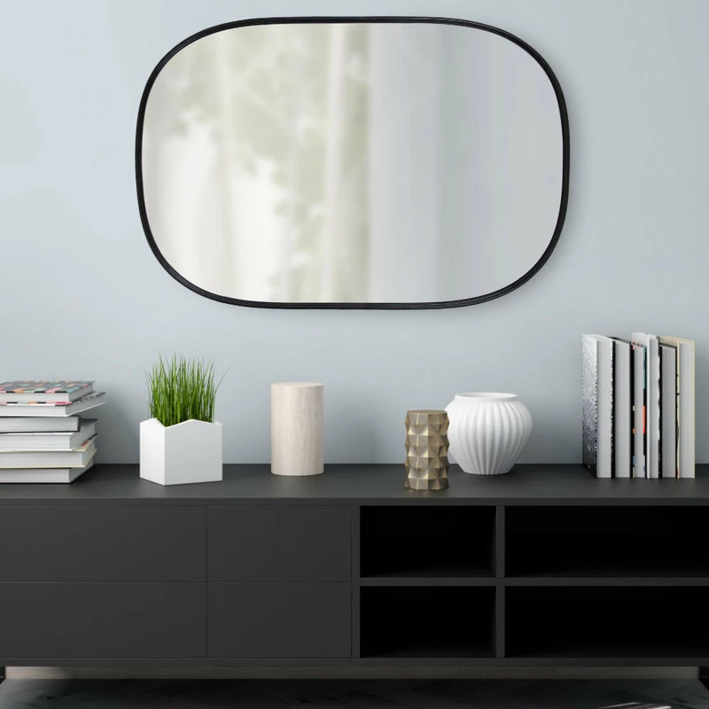 - Built with durable wood material with a large rounded rectangular shape, this mirror can be hung confidently anywhere throughout your home where you want to add some class and style