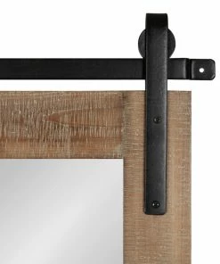 - RUSTIC FARMHOUSE MIRROR: The Cates Mirror features a barn door-inspired design with a rustic brown finish and black iron bracket inspired by sliding barn doors