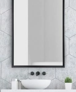 Add a sleek, modern accent piece in your home with this beautiful Evans Wall Mirror from Kate and Laurel. This mirror brings a modern simplicity to your home, featuring a classic, rectangle shape and a chic black finish on its frame. The overall dimensions are 24 inches wide and 36 inches tall, providing a contemporary statement in your home that doesn’t overpower your other decor pieces. In fact, we recommend displaying the Evans Modern Wall Mirror in multiples, creating a dynamic triad or dual wall display. Use this mirror as a contemporary accent piece in any room of your home. Thanks to its modern, yet simple design, its easy to feature in any living room, bedroom, bathroom, entryway, or kitchen. Its rectangular shape also allows it to be easily displayed as a bathroom vanity mirror over a sink. The Evans Modern Wall Mirror is ready to go right out of the box in a matter of seconds, with no assembly required and metal D-ring hangers attached to the back for easy and secure installation.