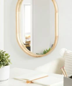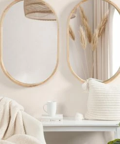 Looking to add some vibrancy to the darker corners of your home? Or are you trying to redecorate with a clean, modern style? Either way, the Hutton wall mirror is the perfect addition to your wall. Inspired by Scandinavian simplicity, the Hutton features a solid poplar wood frame with a natural finish, giving it that back-to-basics look. The Hutton also has an on-trend, contemporary capsule shape, inspired by modern geometry. It’s a subtle yet commanding focal point that looks beautiful in various spaces in your home. The overall dimensions of this oval mirror are 24 inches by 2 inches by 36 inches, making it fantastic as a decorative statement piece or as a bathroom mirror above your vanity. If you decide to decorate your home with this mirror, you’ll find that it opens your space and makes it feel larger, harnessing light sources to create brightness across your room. It’s 2-inch depth also draws the eye, creating a dimensional piece that is visually striking. This mirror hangs vertically and horizontally with metal D-ring hangers, making it a versatile wall mirror for any area of your home.