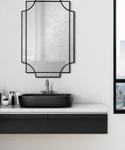 The Minuette Wall Mirror is the perfect way to expand your smaller spaces while also adding a touch of timeless, beautiful accent piece. It features a glam, elegantly-structured geometric frame, providing you with an eye-catching decor piece your friends and family won’t want to miss. With its sleek, transitional black finish on its frame, this decorative statement looks perfect in any room of your home, including the bedroom, bathroom, entryway, dining room, or kitchen. It looks fantastic as a piece of decor, but it also features plenty of function. Adding a mirror to your home reflects and spreads light, opening up your otherwise smaller spaces and bringing in dimension. You could even use the Minuette Glam Wall Mirror as a chic bathroom wall mirror. This mirror stands at 36 inches tall by 24 inches wide, giving you the perfect size to display on its own or in multiples, creating a timeless, elegant wall display. This mirror is also easy to hang with secure metal D-ring hangers.
