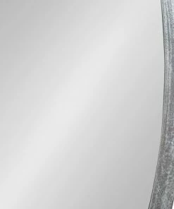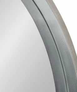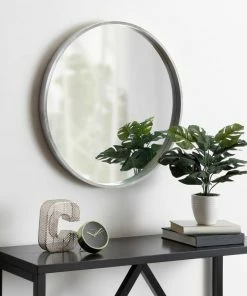- A circular wooden framed wall mirror with a metallic silver finish adds a soft contemporary look in your home
