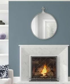 Your home deserves an accent piece that echoes the craftsmanship and charm of decades of design. Choose the Yitro mirror to allow your home a decorative piece that makes a bold statement. Inspired by vintage farmhouse style, the Yitro features an iron frame finished in a sophisticated silver coat. This silver mirror also features an ornamental metal clasp at its crown, giving it the ultimate rustic look. The Yitro mirror’s round shape allows you to utilize it in various decor spaces: use it as a decorative feature in your living room, bedroom, entryway, or dining room. Adding a mirror to your home decor allows for more light in your space, making it feel more open, inviting, and spacious. At 23.5 inches wide by 1 inch deep by 28.5 inches tall, the Yitro mirror also makes a charming bathroom mirror above your vanity. Hang this rustic mirror in only a matter of seconds with the keyhole hanger that is welded onto the back of the Yitro’s frame.
