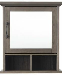 Upgrade your bathroom storage while adding modern farmhouse decor with the Elegant Home Fashions Russell Modern Farmhouse Wooden Medicine Cabinet. This decorative cabinet features a rustic salt oak finish with mirrored door and matte black pull for an elevated and stylish addition to your space. The interior adjustable shelf and two bottom open shelves offer customizable and functional storage that is great for storing toothbrushes, toothpaste, soaps, lotions, and more to reduce clutter and keep your bathroom tidy. Constructed from durable engineered wood, this medicine cabinet is built to provide you with long-lasting organization. Easy, step-by-step instructions and all of the hardware needed are included for quick assembly. Purchase this stylish cabinet alone or with other items from the Russell collection for a cohesive, updated look. The Elegant Home Fashions Elegant Home Fashions Russell Wooden Medicine Cabinet with Mirror and Open Shelving measures 6″ x 18″ x 20.6″ to provide removable storage without taking up too much space in your bathroom.