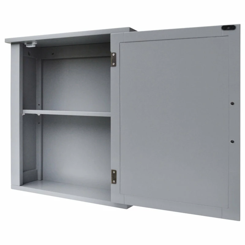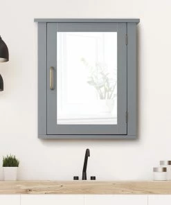Upgrade your bathroom storage while adding mid-century modern decor with the Elegant Home Fashions Mercer Mid Century Modern Wooden Medicine Cabinet. This decorative cabinet features a gray finish with a mirror door and brass pull for an elevated and stylish addition to your space. The included adjustable shelf offers customizable and functional storage that is great for storing toothbrushes, toothpaste, soaps, lotions, and more to reduce clutter and keep your bathroom tidy. Constructed from durable engineered wood, this medicine cabinet is built to provide you with long-lasting organization. Easy, step-by-step instructions and all of the hardware needed are included for quick assembly. Purchase this stylish cabinet alone or with other items from the Mercer collection for a cohesive, updated look. The Elegant Home Fashions Elegant Home Fashions Mercer Wooden Medicine Cabinet measures 6″ x 18″ x 20.6″ to add storage in narrow spaces.