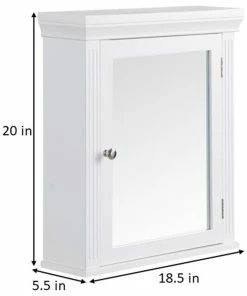Upgrade your home storage while adding classic decor with the Elegant Home Fashions Chestnut Wooden Medicine Cabinet with Crown Molded Top. This decorative cabinet features a white finish with a crown molded top, a mirror door, double-plated knobs, and stylish columns with 3 grooves for a beautiful addition to your space. The included adjustable shelf helps to reduce clutter and keep your home tidy. Constructed from durable engineered wood, this medicine cabinet is built to provide you with long-lasting organization. Easy, step-by-step instructions and all of the hardware needed are included for quick assembly. Purchase this stylish cabinet alone or with other items from the Chestnut collection for a cohesive, updated look. The Elegant Home Fashions Chestnut Wooden Removable Medicine Cabinet with Crown Molded Top measures 18.5″ x 5.5″ x 20″ to provide removable storage without taking up too much space in your living space.