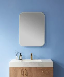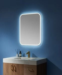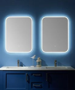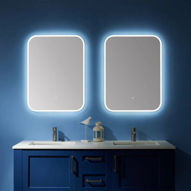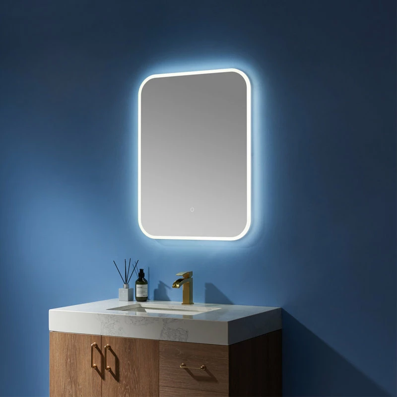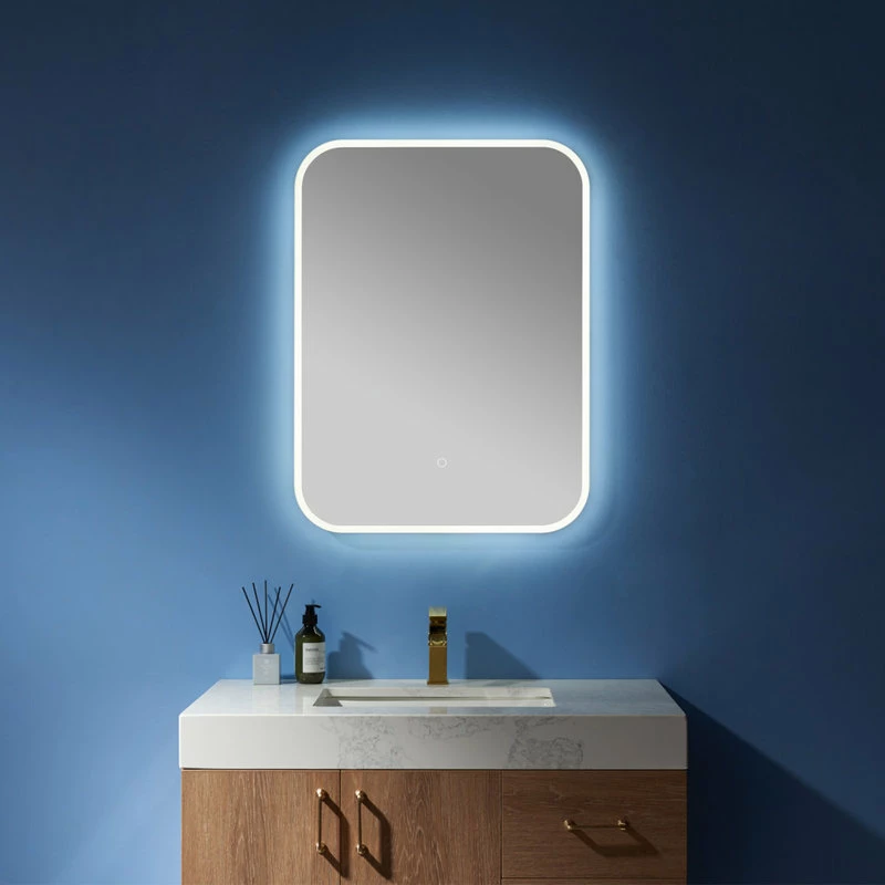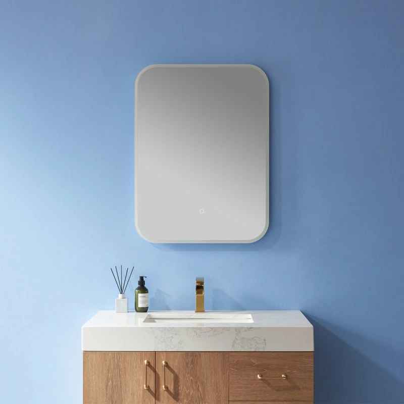 - Rectangle LED bathroom mirror with rounded corner with Eenergy-efficient LED lighting
