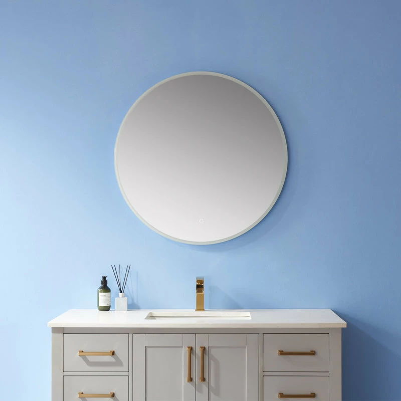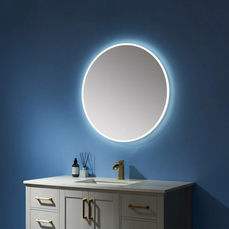 - Round acrylic LED bathroom mirror with Energy-efficient LED lighting