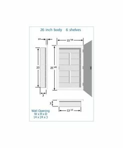 - 26″ cabinet includes 6 adjustable shelves